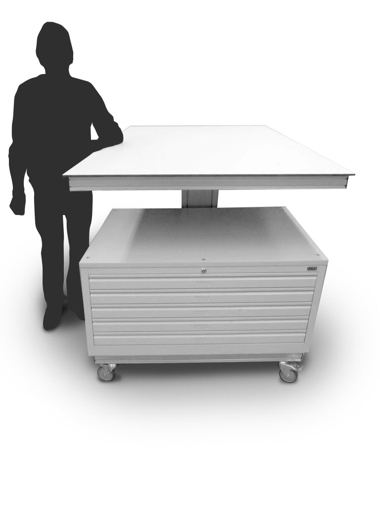 Mit einer Belastbarkeit von bis zu 800 Kg auch als Packtisch zur Verpackung von Skulpturen einsetzbar.