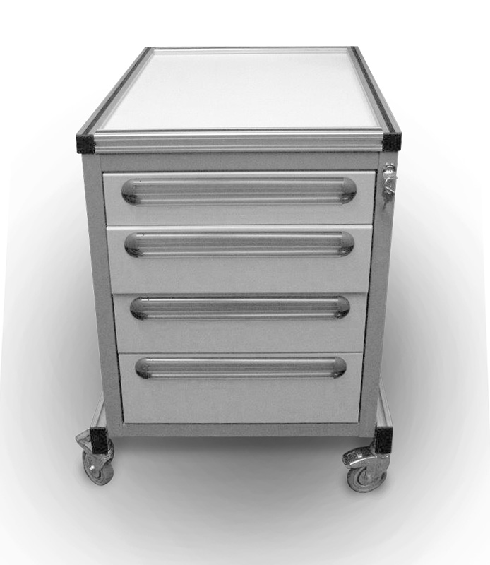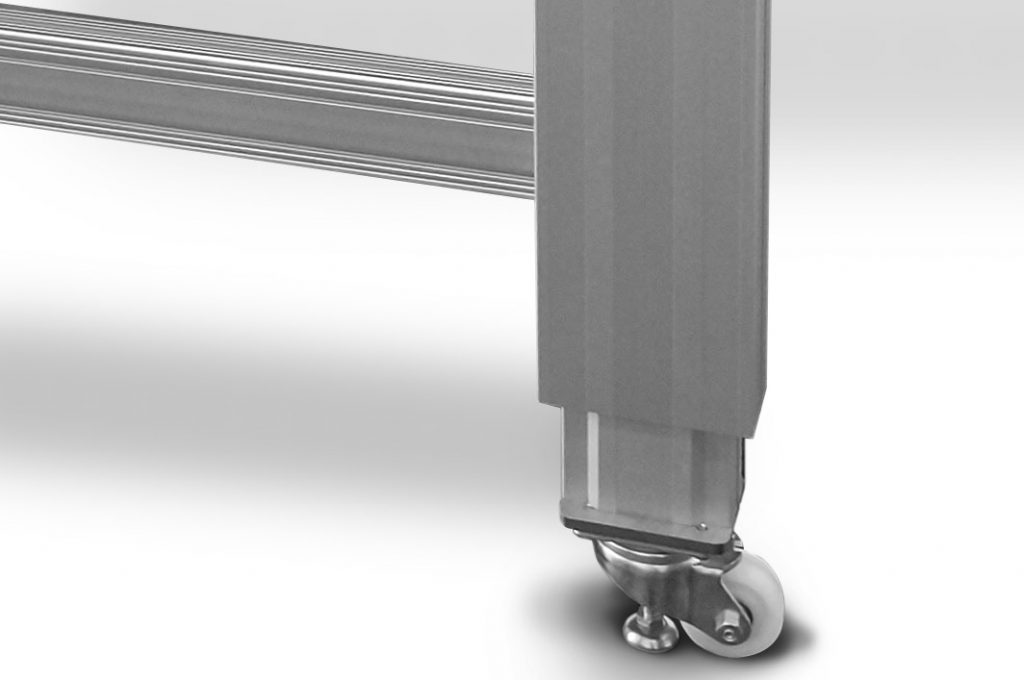 Unsere Arbeitstische werden mit feststellbaren Rollen versehen, aber auch feststehende Lösungen sind möglich.