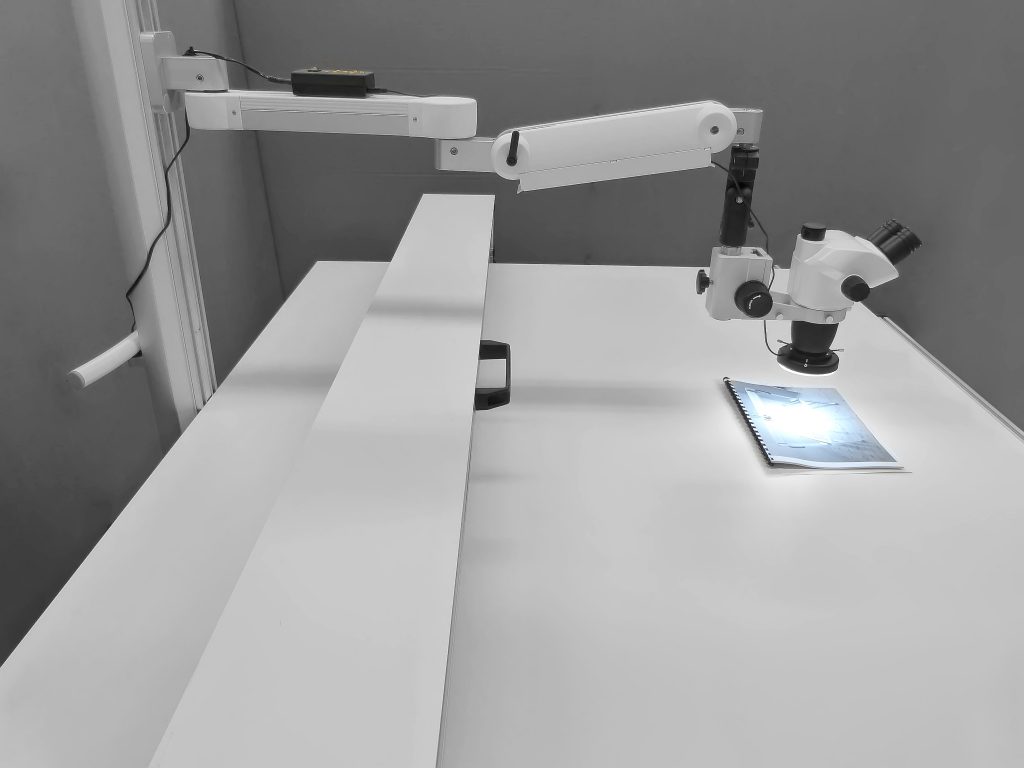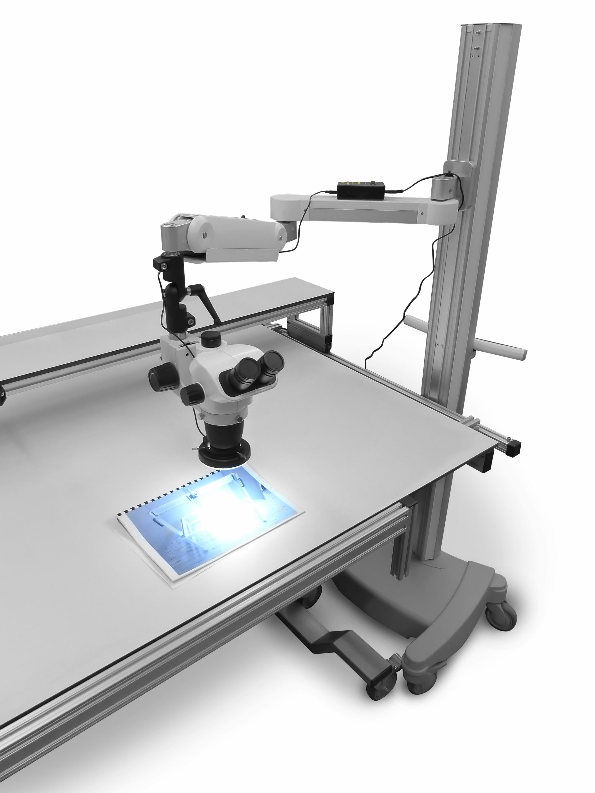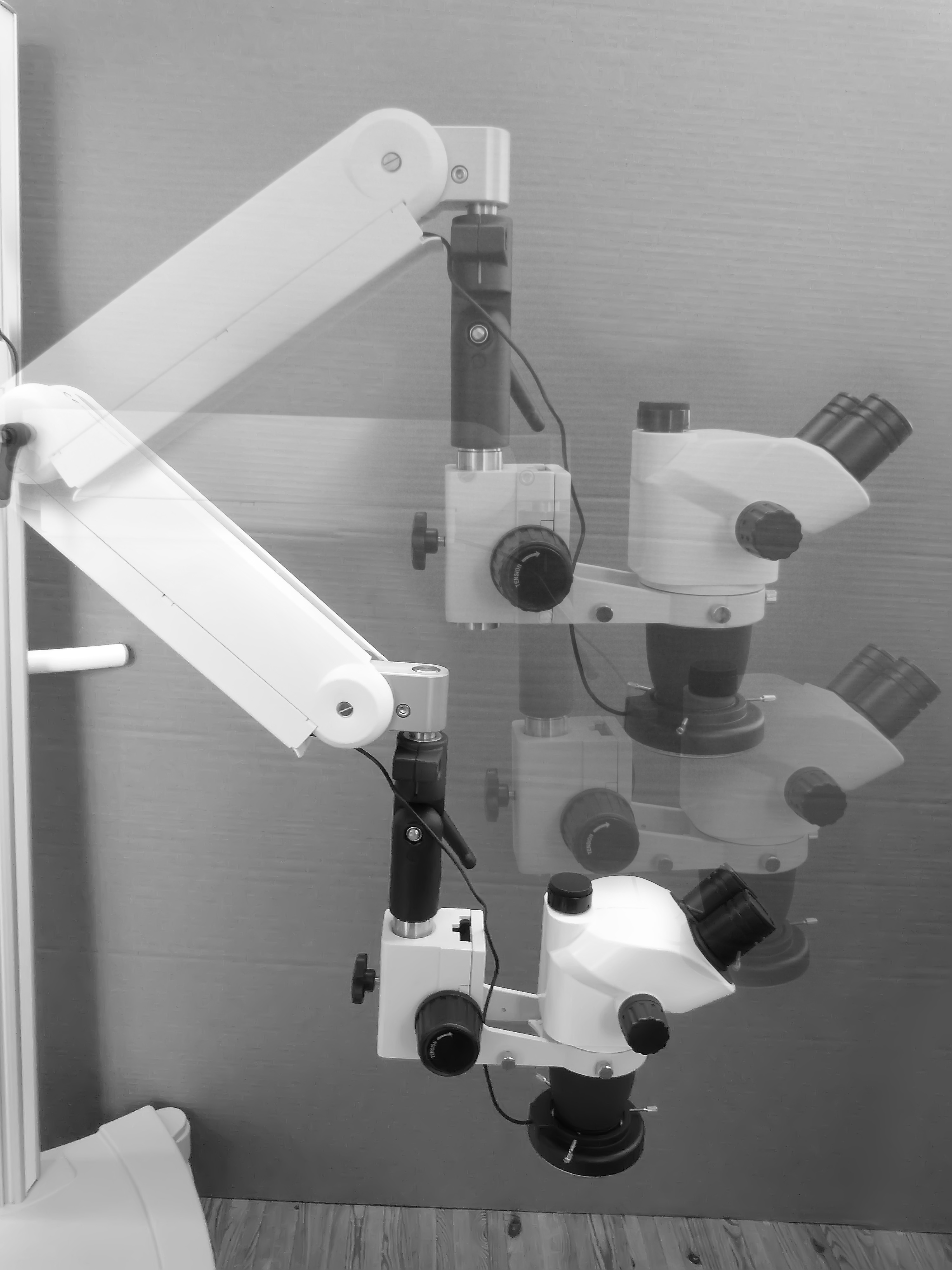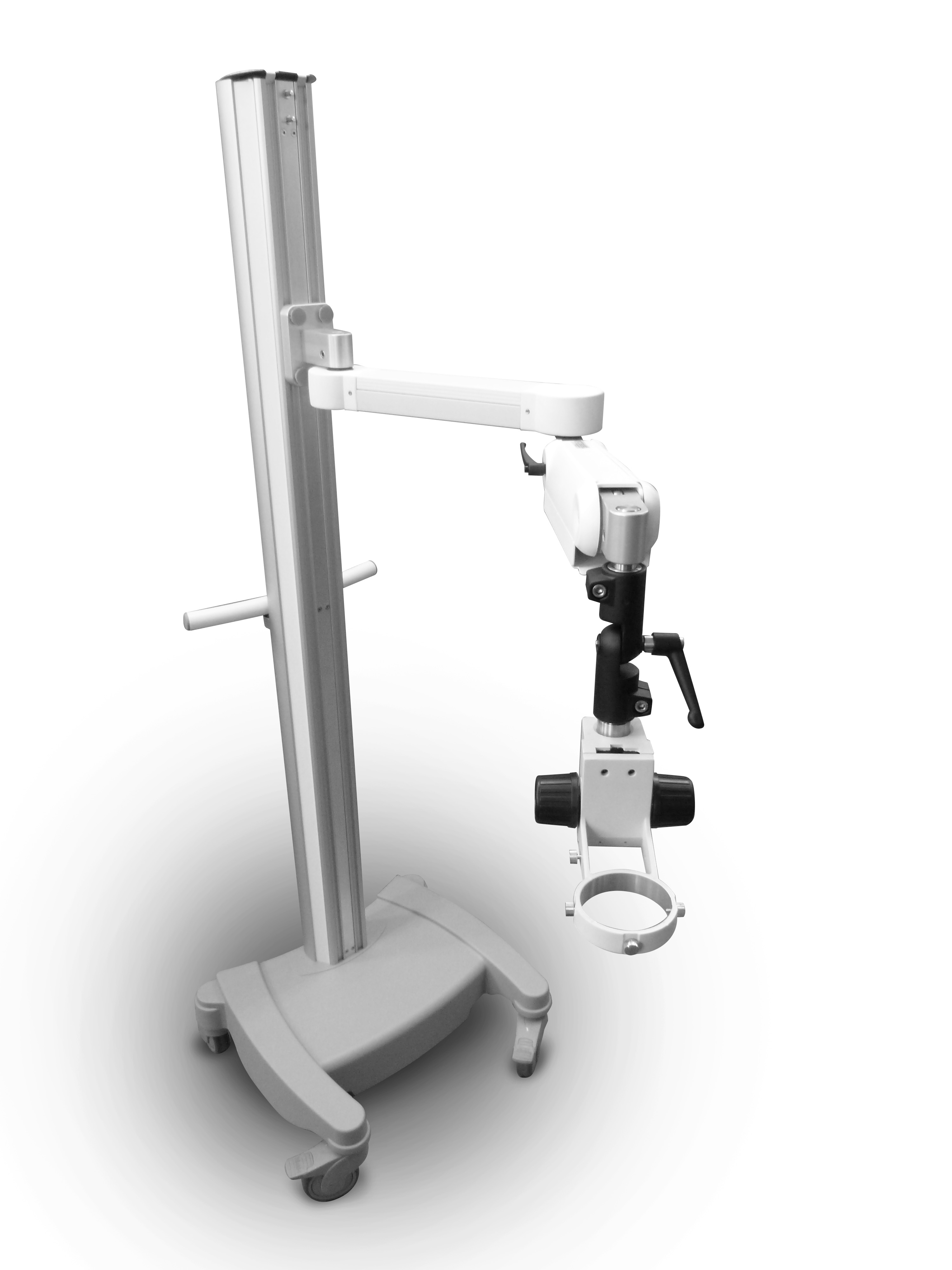 Rollbarer Mikroskopwagen mit verstellbarem Arm.