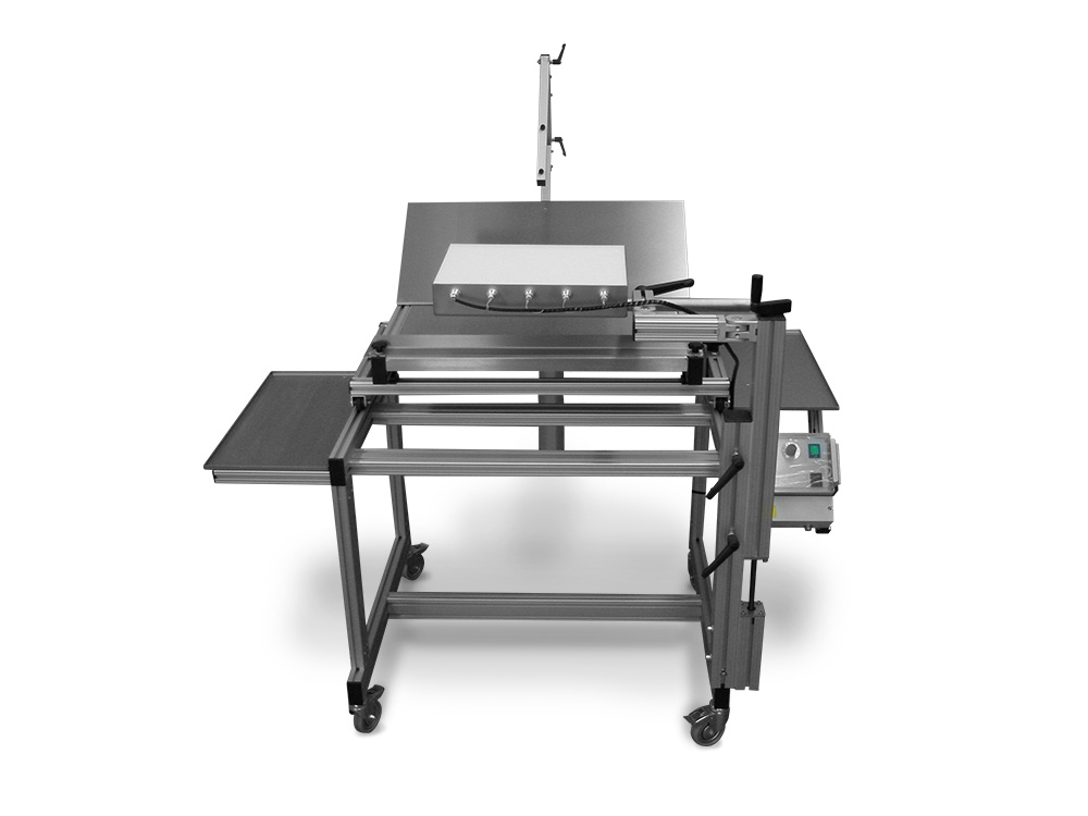 Erleichtert wird die Handhabung durch die Anbringung des BELO Buchkeils an einer schwenkbaren Halterung, die zusätzlich höhenverstellbar ist. Der BELO Buchkeil lässt sich seitlich verschieben und neigen.