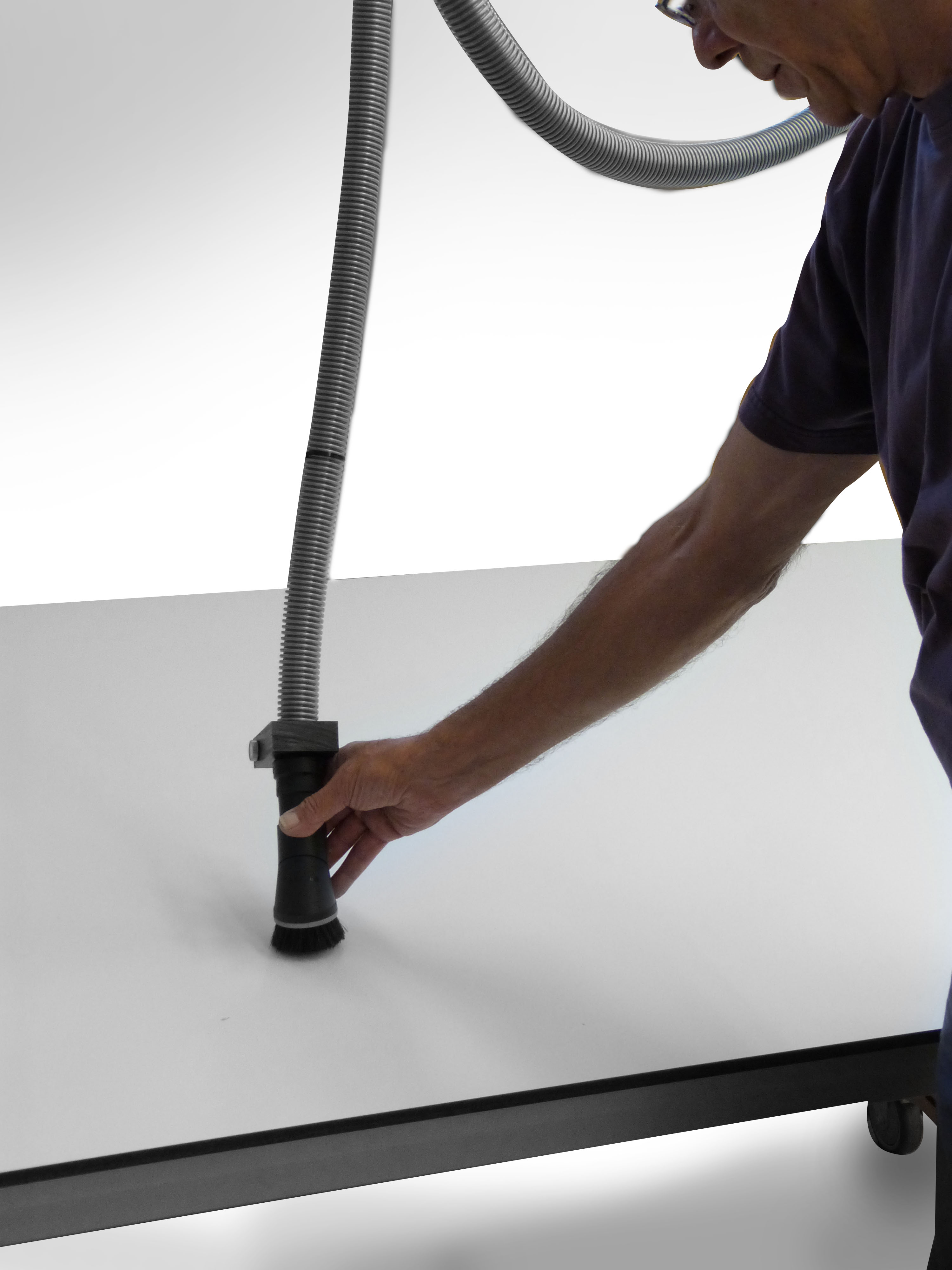 Arbeitstisch mit Absaugarm für Trockenreinigung.