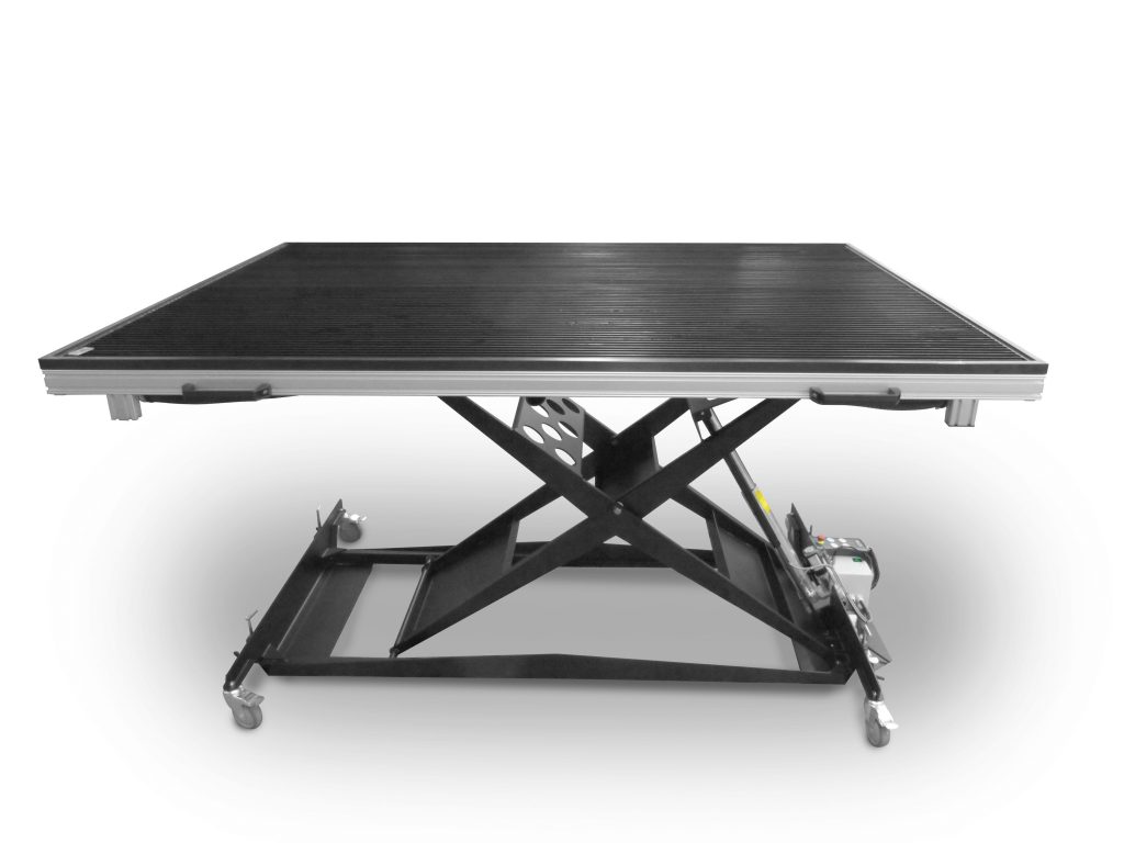 Unterdrucktisch mit matt-schwarzer Lochplatte.