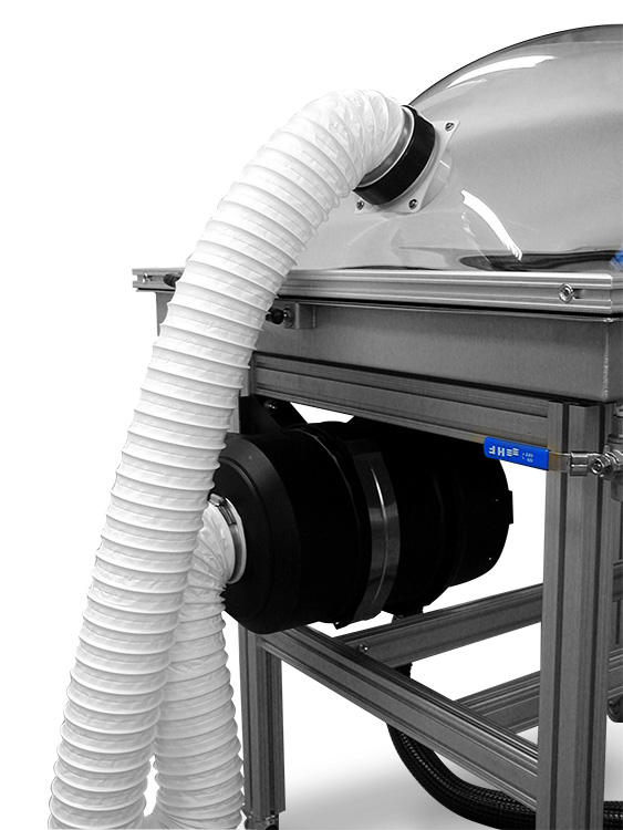 In Kombination mit der Plexiglashaube wird die über den Unterdruckerzeuger angesaugte Luft gefiltert, bevor sie in die Plexiglashaube strömt.